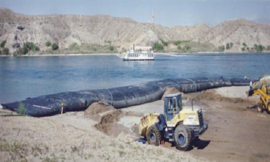 One 9' high by 150' long AquaDam® was used to dewater a boat ramp. Installation time was six hours. When fully inflated, this AquaDam® contained 125,000 gallons of water and controlled a water depth of 8 feet.