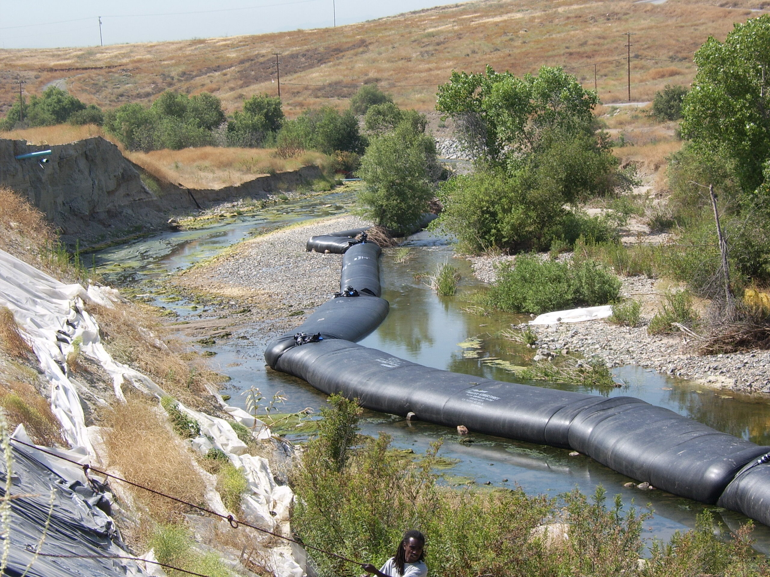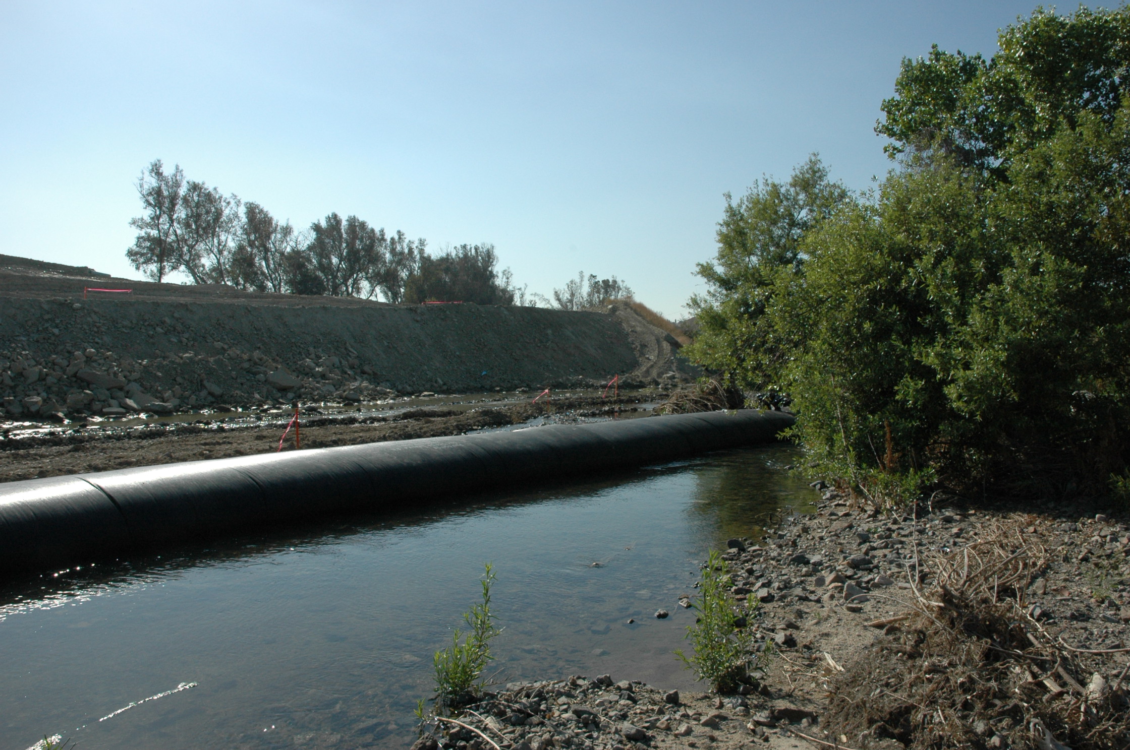 With this AquaDam® cofferdam system in place, a major of the flow has been diverted.