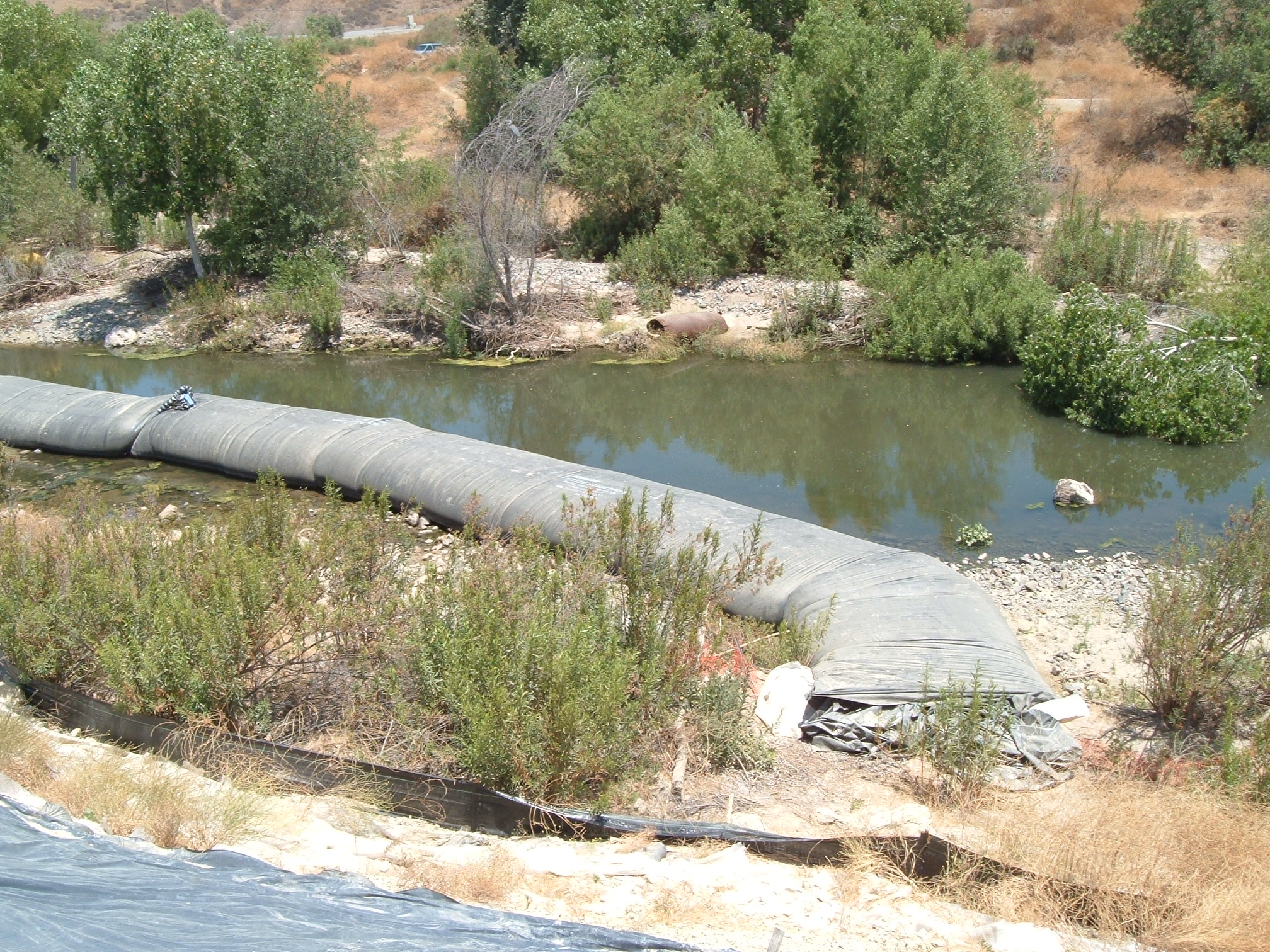 Here is a closer photo of non-abrasive fill material was used to support the AquaDam. Helping to brace it against the forces of the water being diverted.