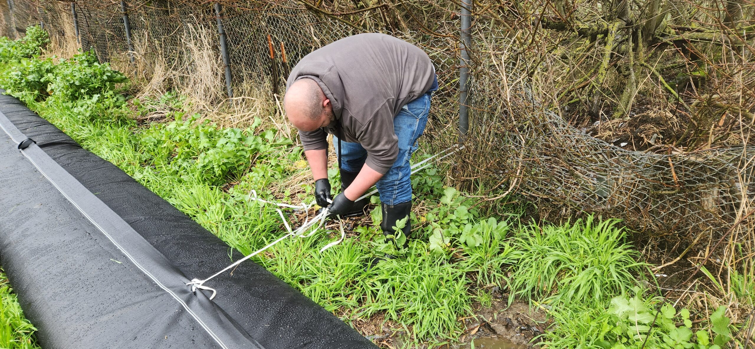 AquaDams can be tied back at multiple points to keep from rolling on a cross slope.