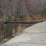 The permits for this job required that a flume pipe be laid underneath the AquaDam® to allow for the passage of fish. A 12-inch PVC pipe was deemed large enough to be used here.