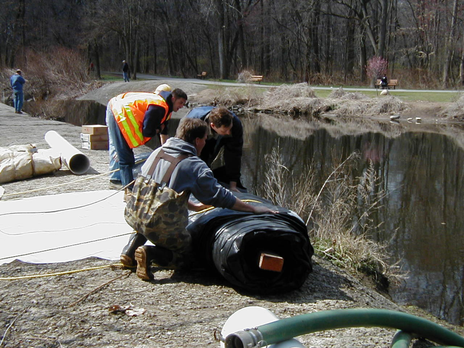 Now that the AquaDam® has sufficient head workers can walk, stand, and work on top of the unrolled length.